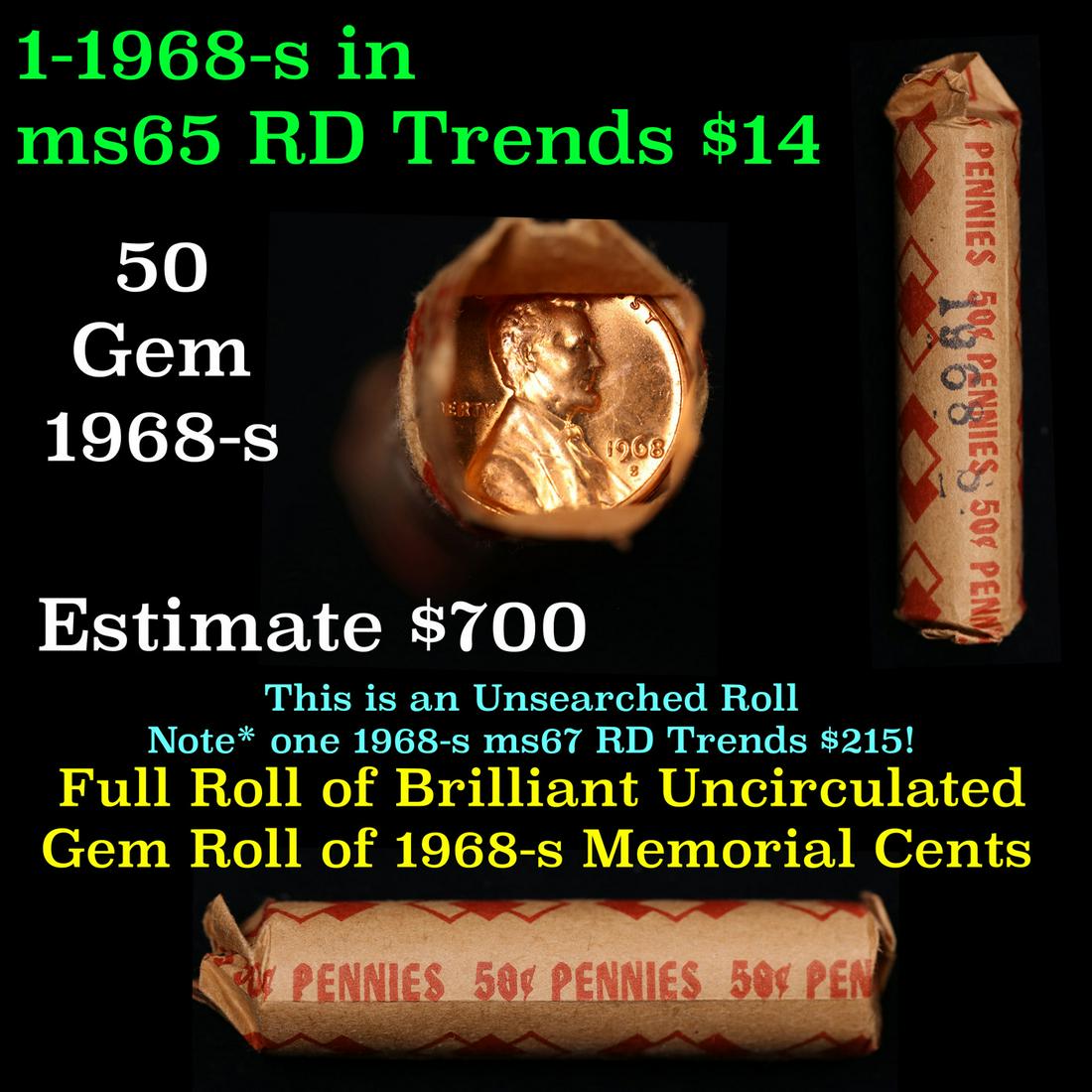 Lincoln 1c roll, 1968-s 50 pcs Wrapper.