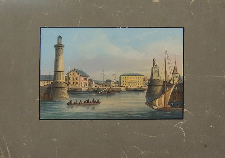 Lindau Lion and Lighthouse, Hand colored, lithography,