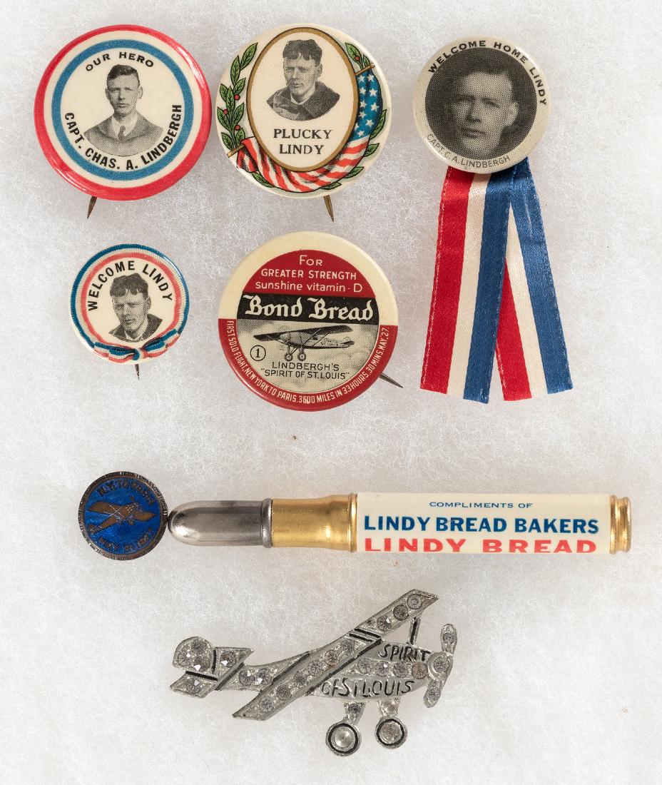 LINDBERGH FIVE BUTTONS, ENAMEL PIN, RARE BREAD PENCIL