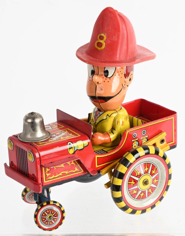1960's Tonka Fire Dept Ladder TruckLINEMAR FIRE DEPT CRAZY CARFeb 27, 2026Vintage Linemar Tin Fire Truck ToyTN Nomura, Fire Chief Mystery Action CarFeb 28, 2026Vintage Tin Litho "Fire Engine 1912" Pumper TruckMar 08, 2026INGAP FIRE PUMPER TRUCKFeb 27, 2026GERMAN FIRE PUMPER ENGINEFeb 27, 2026Marx Pressed Steel Fire Chief Car1 day LeftLouis Marx Lithographed Tin Whoopee Mobile ToyMar 07, 2026Marx Ride-On No. 6 Fire TruckDISTLER FIRE LADDER TRUCK W/ HEADLIGHTFeb 27, 2026Buddy "L" CFD" Fire Truck1920's Hubley Cast Iron Fire Pumper TruckMar 28, 2026Unique Art "Rodeo Joe" Crazy Car Wind-up1931 Ford Model A Fire Chief Truck – Red Vintage Metal ReplicaMar 02, 20261931 Ford Model A Fire Chief Truck – Red Vintage Metal Replica4 days Left