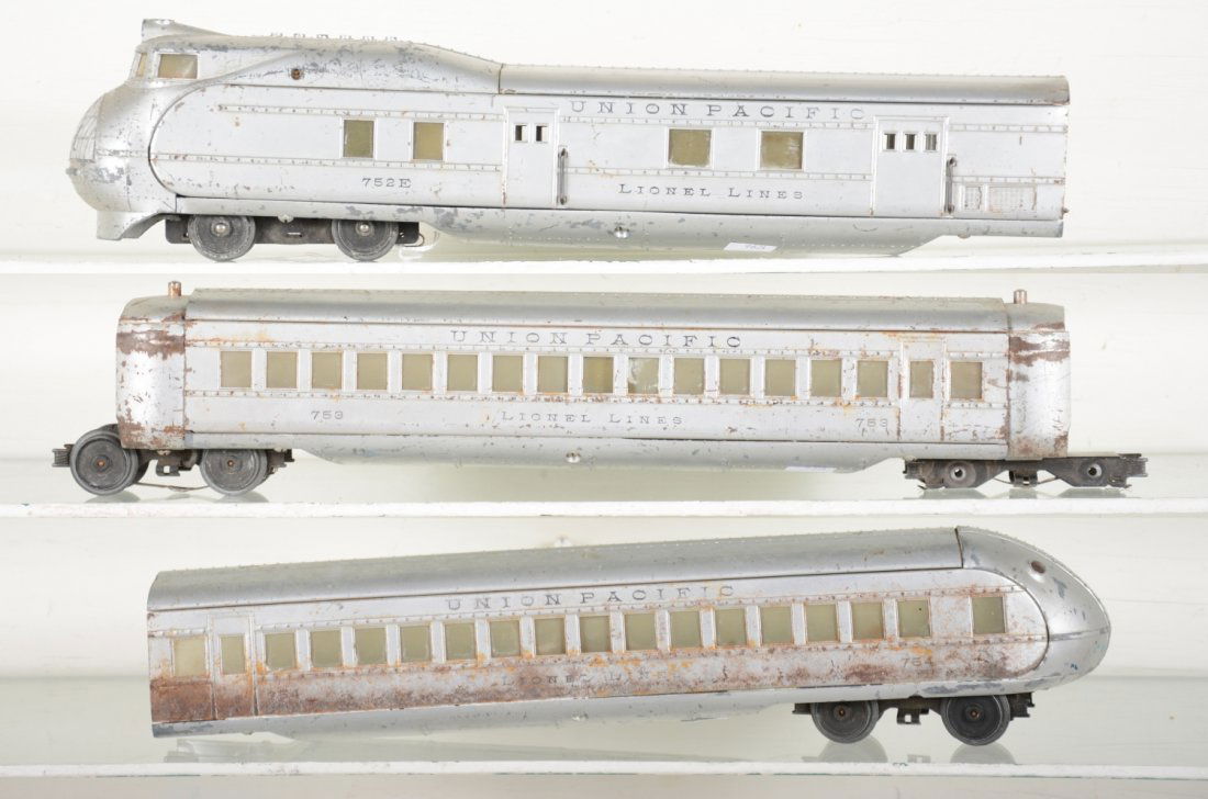 Lionel Prewar O Gauge Outfit No. 751E Aluminum City of Portland Streamliner Set with extra Car BoxedLionel Prewar O Gauge Outfit No. 751E Aluminum City of Portland Streamliner Set with extra Car Boxed, including 752, 753, 753, 754 1074, with 3 vestibules, each in C7 minus or better. This Lot also in