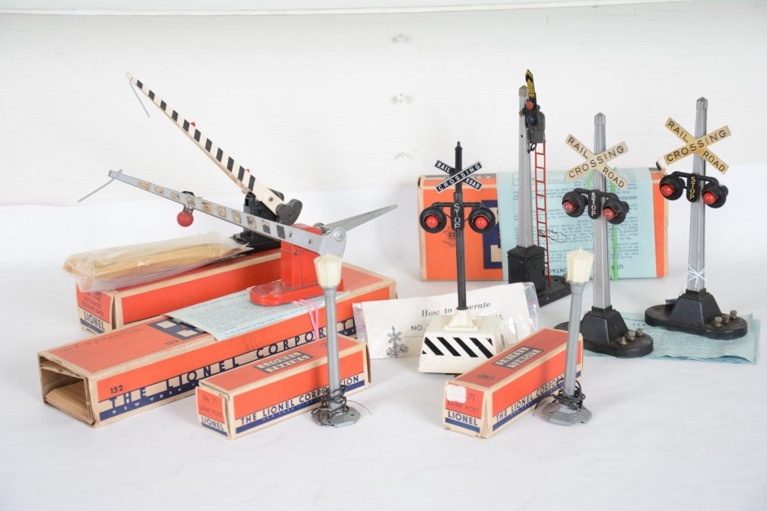 SoldLIONEL ACCESSORY LOTIncludes 77 Crossing Gate, 89 Flag Pole, 2-46 Automatic Crossing Gate, 271 Span Bridge, 93 Water Tank, 59 Lamp Post, 56 Lamp Post, 6-12761 Animated Billboard all Boxed. Plus 45W Automatic Gateman, 127See Sold Price