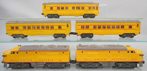 SoldLIONEL TRAINS SET #1464W - UNION PACIFIC ANNIVERSARY SETLIONEL TRAINS SET #1464W - UNION PACIFIC ANNIVERSARY SET Vintage Lionel Anniversary Set (reconditioned), produced in 1950. The set of five (5) includes as follows: 2023 U.P. Alco Powered A, 2023 U.P.See Sold Price