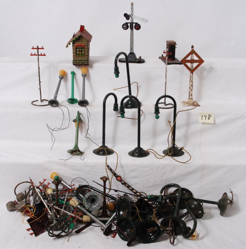 Lionel lamp posts, crossing gate, bell ringing sig
