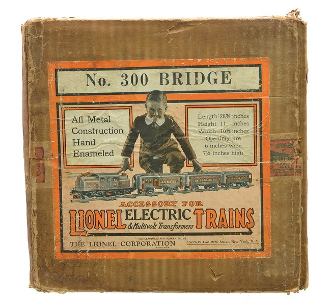 SoldNice Boxed Early Lionel 300 Hellgate BridgeOne of the nicer examples we have had in a while. It is fairly clean for a change, showing only light to moderate playwear, 1 mounting holes in base from piers, otherwise is C7-7+ with a complete origSee Sold Price