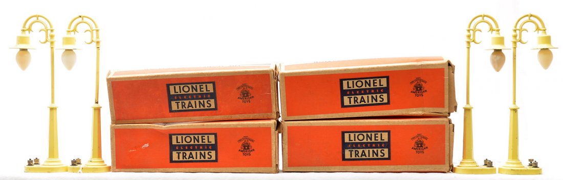 Lionel Postwar four 58 Cream Lamp Posts OBs