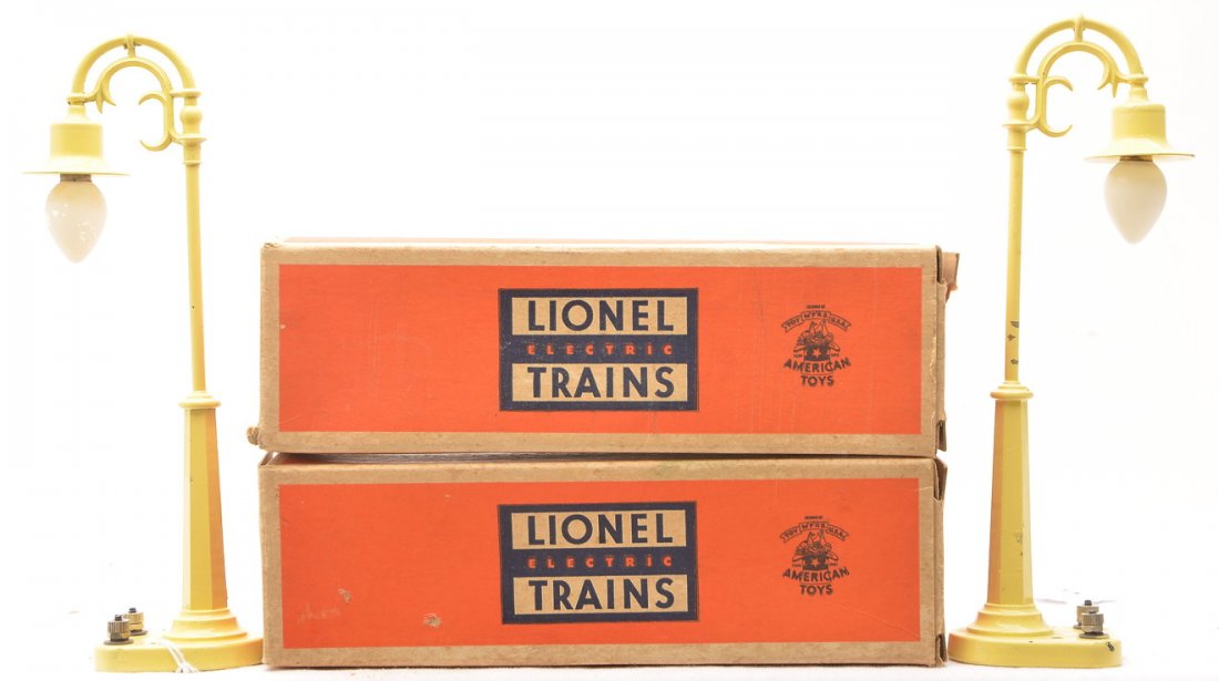 Lionel Postwar two 58 Cream Lamp Posts OBs