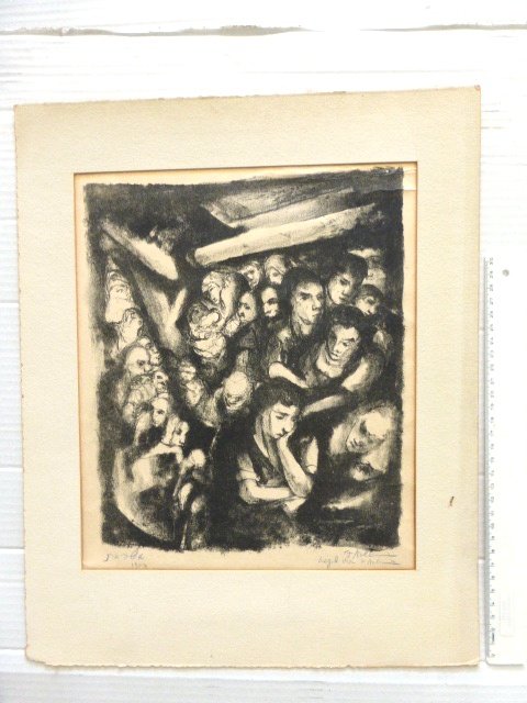 Lithograph, figures, signed 1950