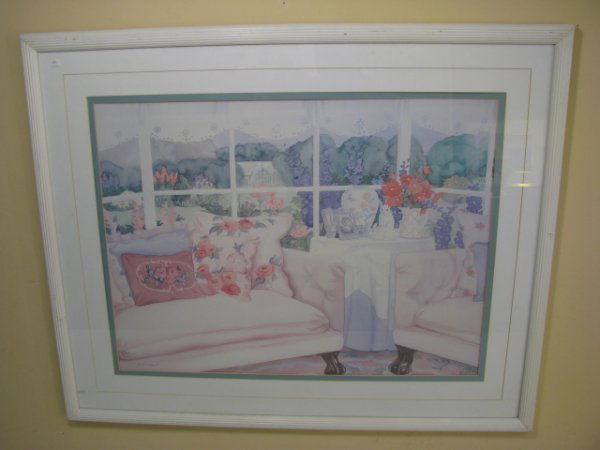 LITHOGRAPH INTERIOR SUN ROOM SCENE