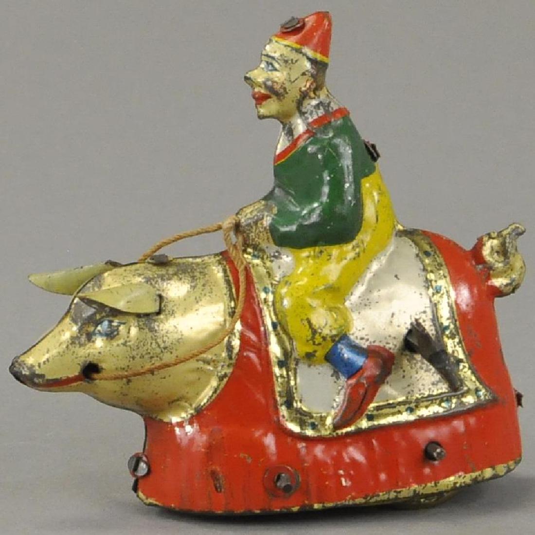 LITHOGRAPHED CLOWN RIDING PIG