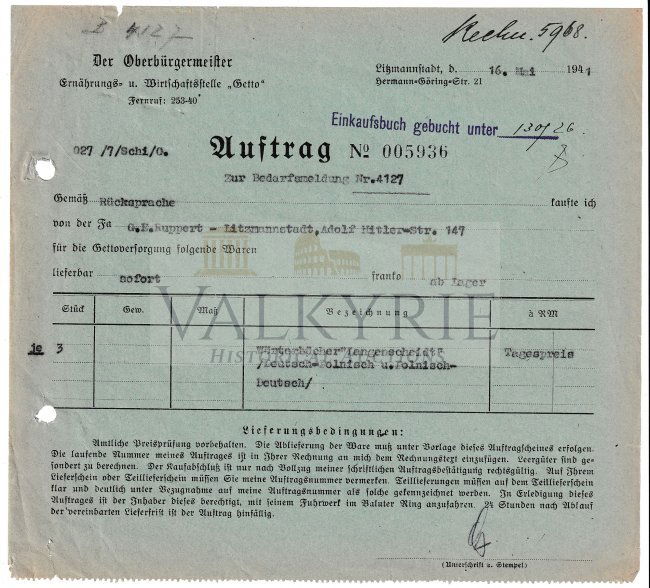 LITZMANNSTADT/LODZ GHETTO MAYOR'S LETTER ON FINANCIAL CLAIMSAlexander Historical Auctions LLC4.5(295)$70(1 bid)1 day Left
