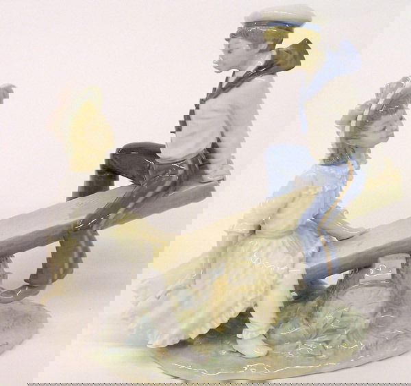 SoldLLADRO PORCELAIN FIGURAL GROUPLLADRO PORCELAIN FIGURAL GROUPModel #1901 - Living in a Dream - with sculptor and decorator's signatures to underside of base, also numbered 15/750. With original box.20 x 12 x 11 in. (50.8 x 30.5 x 2See Sold Price