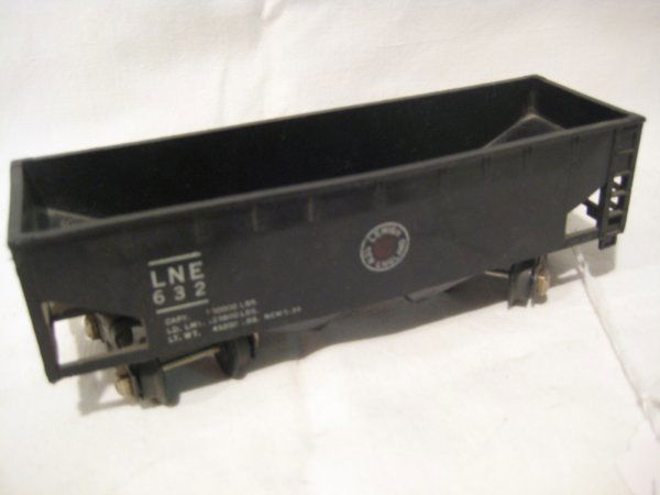 SoldScarce American Flyer Freight CarsS Gauge. Includes gray 641 gondola, 2 broken steps; (632) Virginian cast hopper, 1 broken step; 632 LNE hopper, white painted black plastic, C5+; 632 LNE cast hopper, 1 broken step. All fairly clean,See Sold Price
