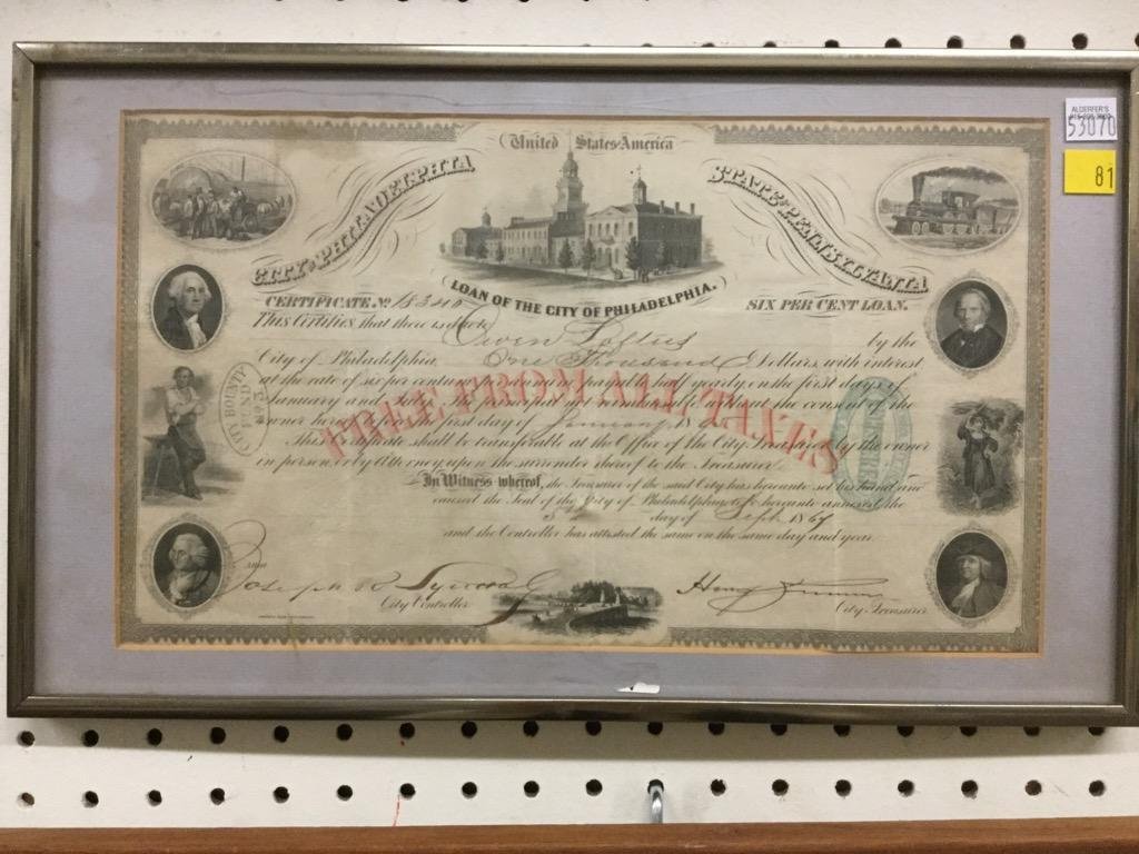 An Antique 1851 Mortgage Deed DocumentFeb 20, 20261863 Civil War Discharge DocumentMar 07, 2026Confederate Civil War $100 Bond - Judah Benjamin2 days Left$1000 Civil War Confederate War Bond2 days Left$50 Confederate Civil War Bond2 days Left1856 Michael Clarken Blackstone Citizenship doc.Mar 02, 2026An Antique 1858 Warranty Deed DocumentFeb 20, 2026Antique United States Land Patent Signed for Stephen W. Hood of Chambers Alabama3 days LeftEarly United States Paper Currency BillsMar 16, 20261865 Civil War Mustered-In DocumentMar 07, 2026Framed February 20, 1863 $1000 Confederate States Of America Loan BondFeb 27, 2026John Schesler, Webster, MA Civil War DischargeMar 02, 2026Handwritten New Hampshire Stampless Cover 1 page, Feb 25th 1835 Advising Quantity Of Twine & YarnFeb 26, 20261861 Oliver P. Morton Indiana Lieut appointment docMar 02, 2026Group of 1830s-1870s Lumber LetterheadsFeb 22, 2026Stephen F. Austin Signed Texian Loan CertificateFeb 26, 2026