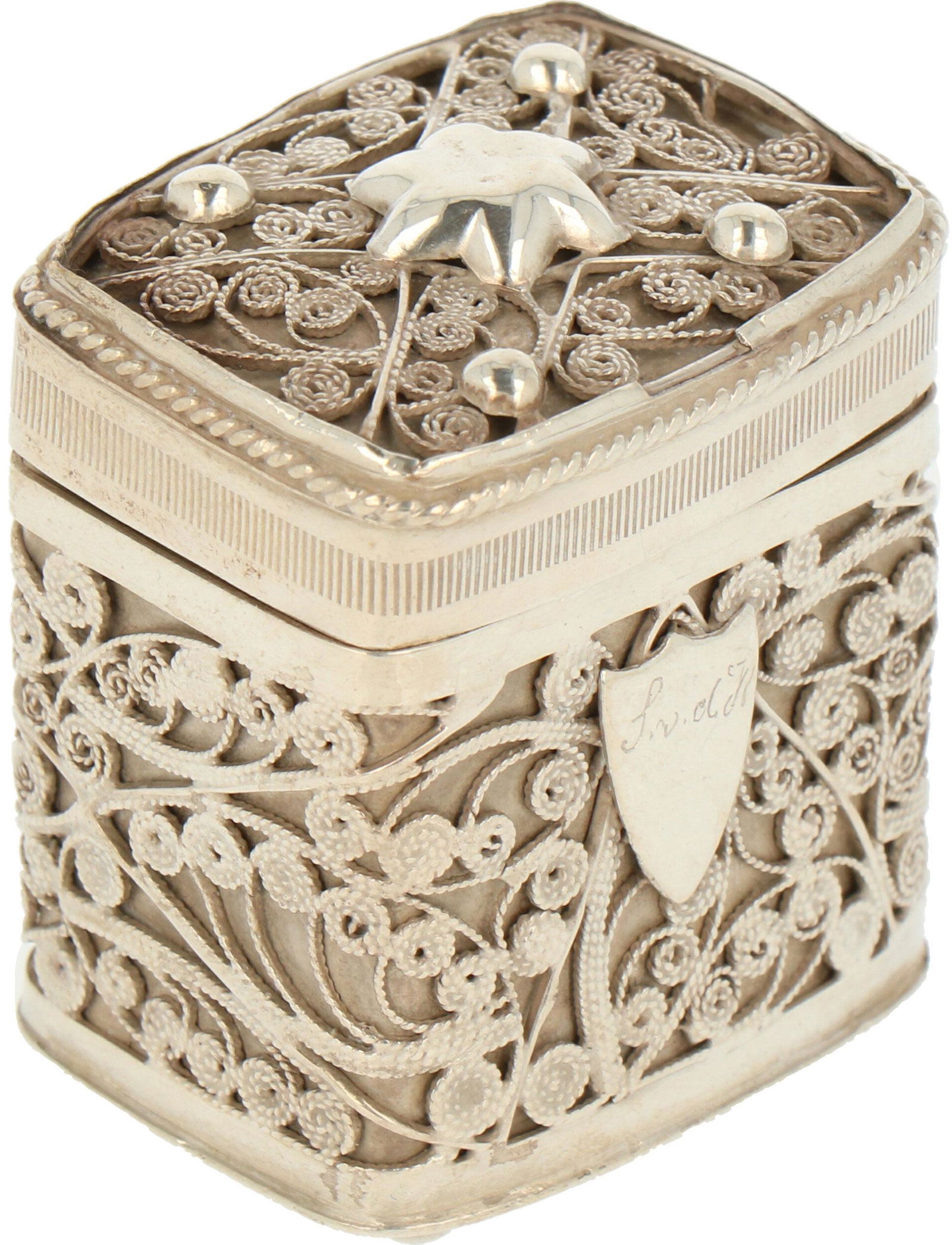Silver Filigree Boxes5 days LeftGodinger Silverplate Scalloped Shape Lidded BoxAmazing Antique Italy 925 Filigree C1900 Pill Box20 hrs LeftRussian Silver Filigree Box5 days LeftVictorian Silver Plate Oval Tea CaddyMar 12, 2026DUTCH SILVER MARRIAGE CASKET17 hrs LeftGerman 750 Silver Vinaigrette Box Kecker Before 18862 days LeftAntique 800 Silver Etched Make-Up Compact2 days Left1900s Signed Hand Chased Islamic Art Box in 900 Coin SilverFeb 28, 2026Antique 1894 Gorham Besamim Holder Sterling Silver Repousse Box2 days LeftAntique Miracoli .800 Silver Trinket Box OrnateMar 04, 2026Vtg. Reuge .835 Sterling Sugar/Mint & Music BoxMar 06, 2026Victorian Silver Plate Tobacco Jar, ca. 1850Mar 12, 2026A YEMENI JEWISH SILVER FILIGREE BESAMIM SPICE BOXMar 06, 2026950 Silver Engraved Snuff Box, c. 1820, B&M Maker's Mark with Clover DeviceMar 08, 2026German Silver Till Box7 days Left