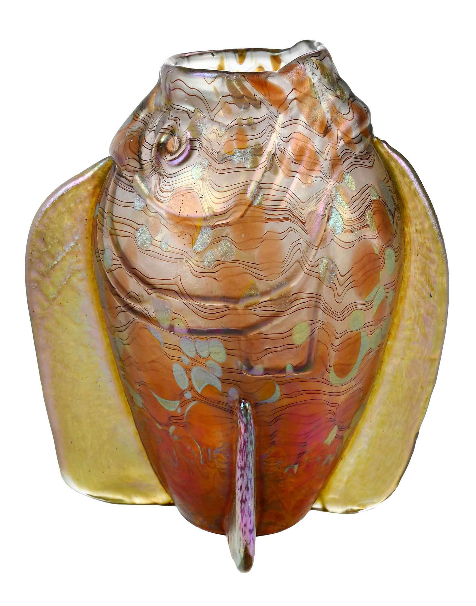 Loetz Attributed Iridescent Glass Figural Fish Vase