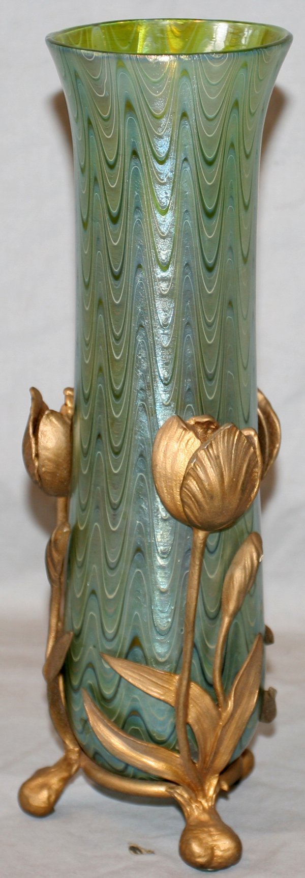 LOETZ GLASS VASE W/TULIP FORM BRONZE BASE