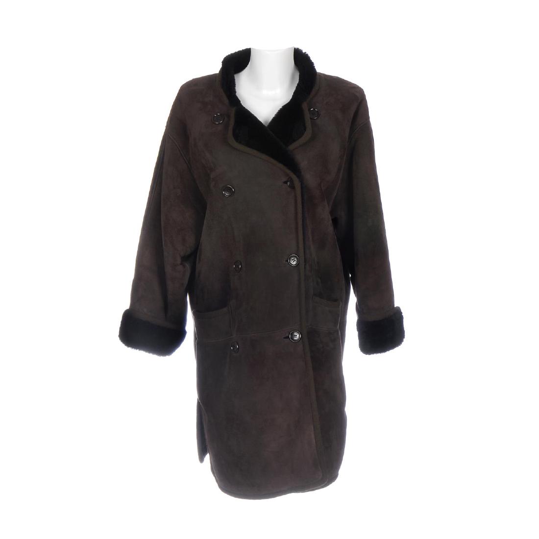 LOEWE - a Shearling coat. Featuring a dark brown suede