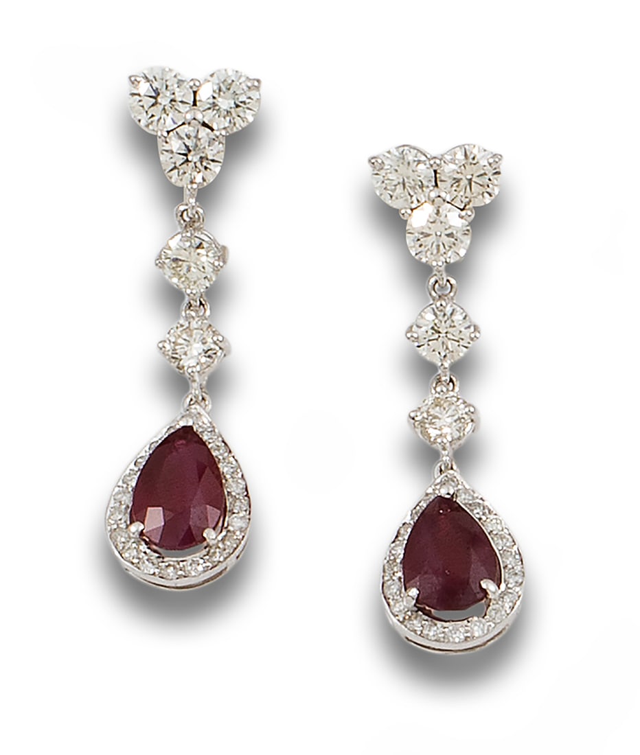 Platinum Handmade Dangle Earrings with GIA Certified Ruby and Diamond 8.15ctwBidhaus4.2(845)$1005 days Left