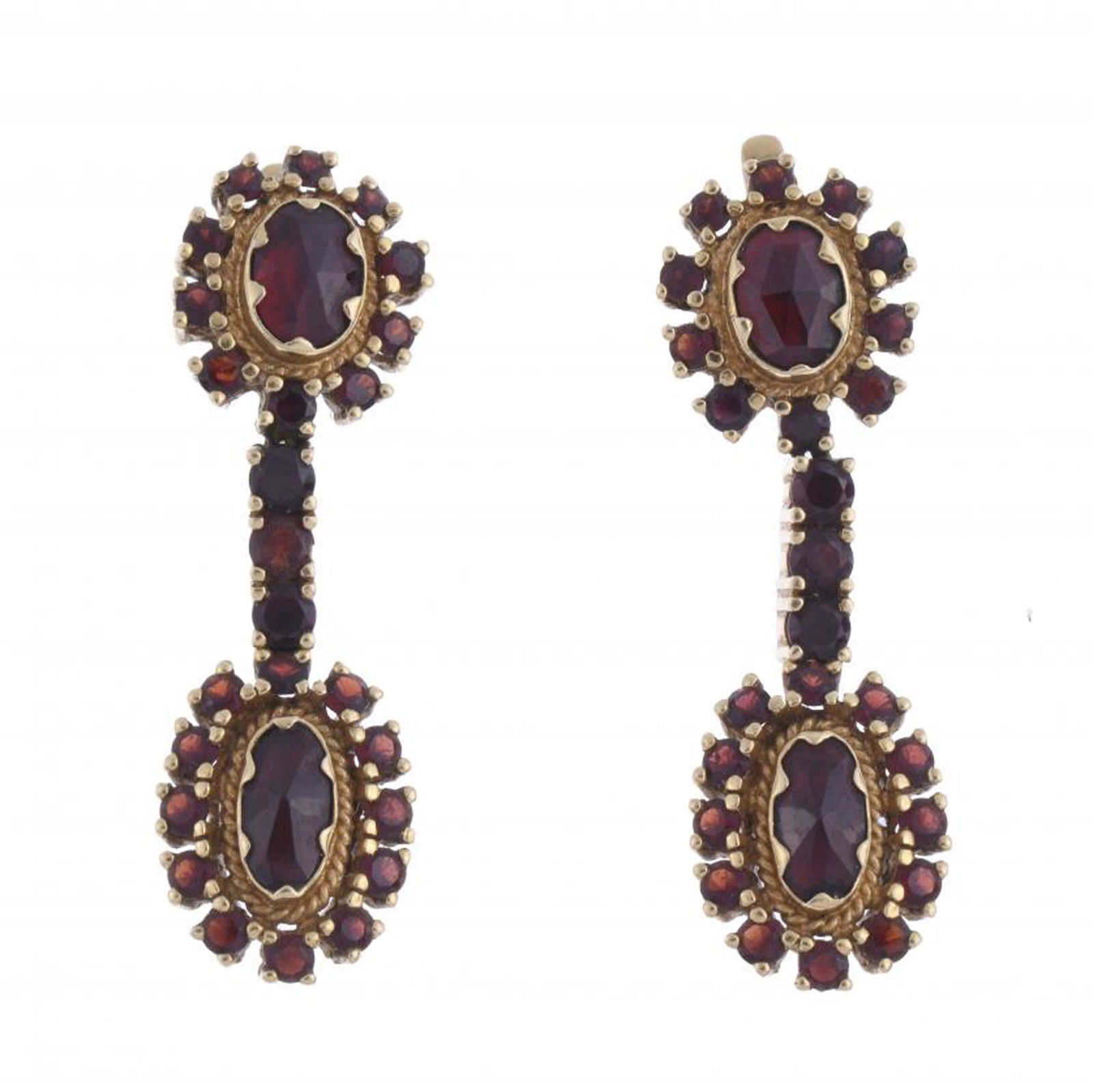 LONG EARRINGS WITH GARNETS.