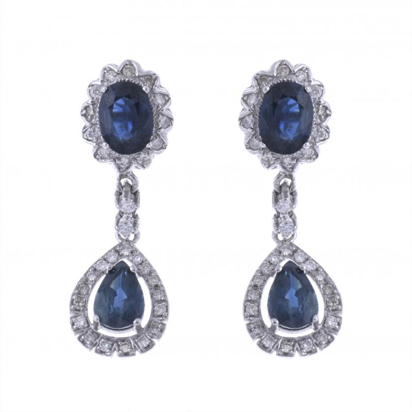 14 kt. Exclusive 14K White Gold 7.00ct Sapphire and 2.36ct Diamond Drop Earrings, White gold -Eastern European Art Gallery Inc$3,7001 day Left