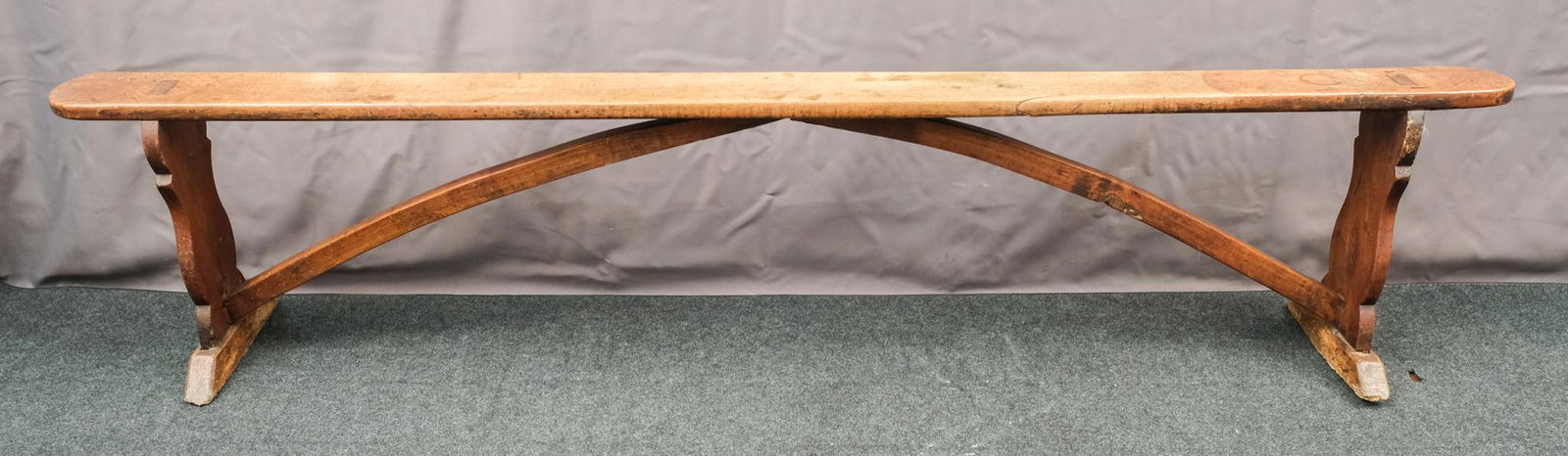 Early 20th Century Rustic Wooden Farmhouse Bench With Plank Seat