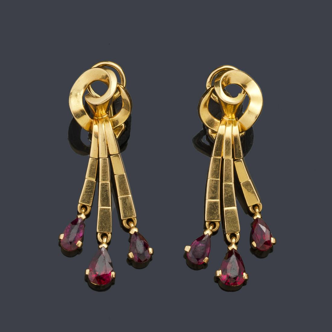 8.00 CARAT MIX SHAPE RUBY 18K YELLOW GOLD DANGLING EARRINGS