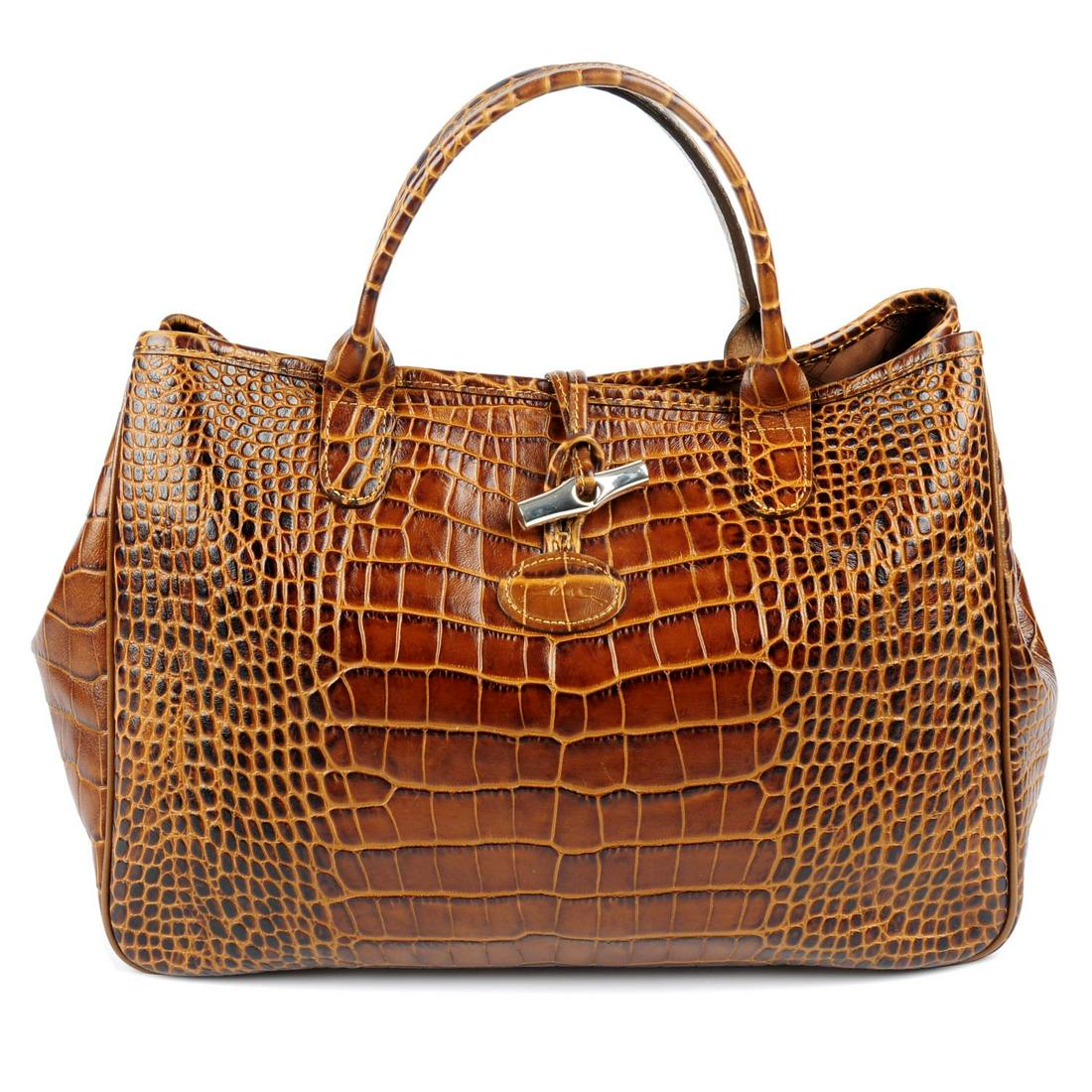LONGCHAMP - an embossed handbag. Designed with a brown