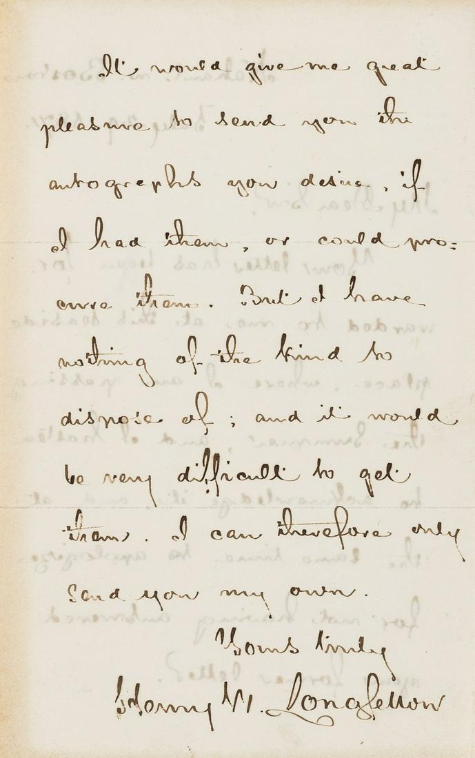 Longfellow (Henry Wadsworth) Autograph Letter signed,