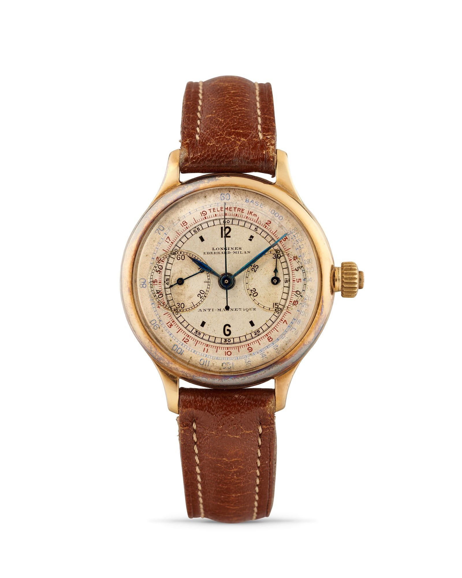 Longines. A silver plated keyless wind open face chronograph pocket watch Longines. Chronographe...Bonhams4(383)€200(1 bid)