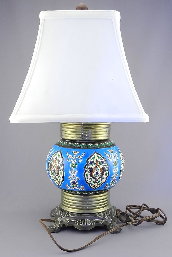 ANTIQUE REVERSE-PAINTED HANDEL BRONZE TABLE LAMP