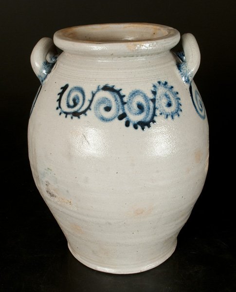 Loop-Handled Stoneware Jar with Watchspring Decoration,