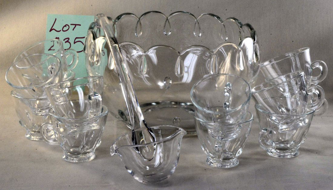 Loop pattern Punch Bowl 12 Cups Glass Ladle