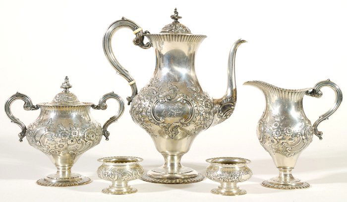 Lot of Nine Sterling Silver Cups & Tankards2 days LeftLot of Assorted Silver Plate, etc. Including Creamer and Sugar, Cups, Pitcher, etc4 days LeftY A GEORGE IV SILVER THREE PIECE LOBED BALUSTER TEA SETFeb 17, 2026Federal Coin Silver Teapot and Sugar Bowl, with Sterling Creamer7 days LeftAssembled American Silver Repousse Tea and Coffee Service18 hrs LeftANTIQUE VICTORIAN AESTHETIC GERMAN COIN SILVER TEA SETFeb 26, 2026SILVERPLATE TEA AND COFFEE SERVICE3 days Left(8 PCS) ENGLISH STERLING SILVER BEVERAGE SERVICEFeb 22, 2026Tiffany & Co. Sterling Silver Tea Service7 days LeftGorham Silverplate Tea and Coffee Service in Medallion Pattern7 days LeftGorham Mfg. Silver Soldered 4 Piece Coffee Service circa 19003 days LeftGorham Plymouth Sterling Silver Tea Service7 days LeftAmerican Sterling Silver Tea and Coffee Service18 hrs LeftY A VICTORIAN SILVER FOUR PIECE TEA SETFeb 17, 2026English Sterling Silver Tea and Coffee Service18 hrs LeftSilver Plated Tea Service Grouping (6)Mar 07, 2026
