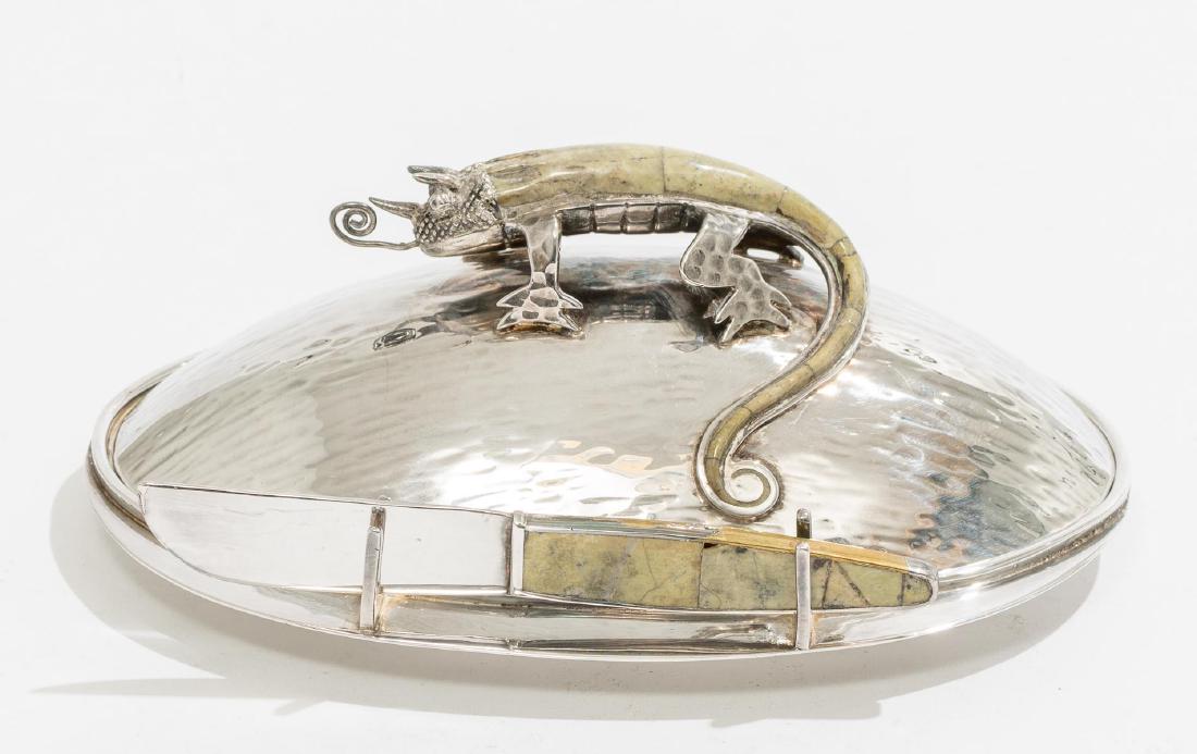 Los Castillo Silver Plate/Stone Lizard Butter Dish