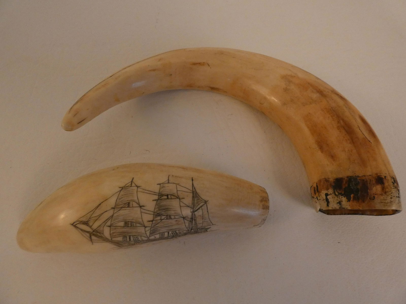 PAIR OF LARGE SCRIMSHAW AND INLAID WHALE'S TEETH 19th Century Lengths approx. 7.5".Eldred's4.8(484)$1,5006 days Left
