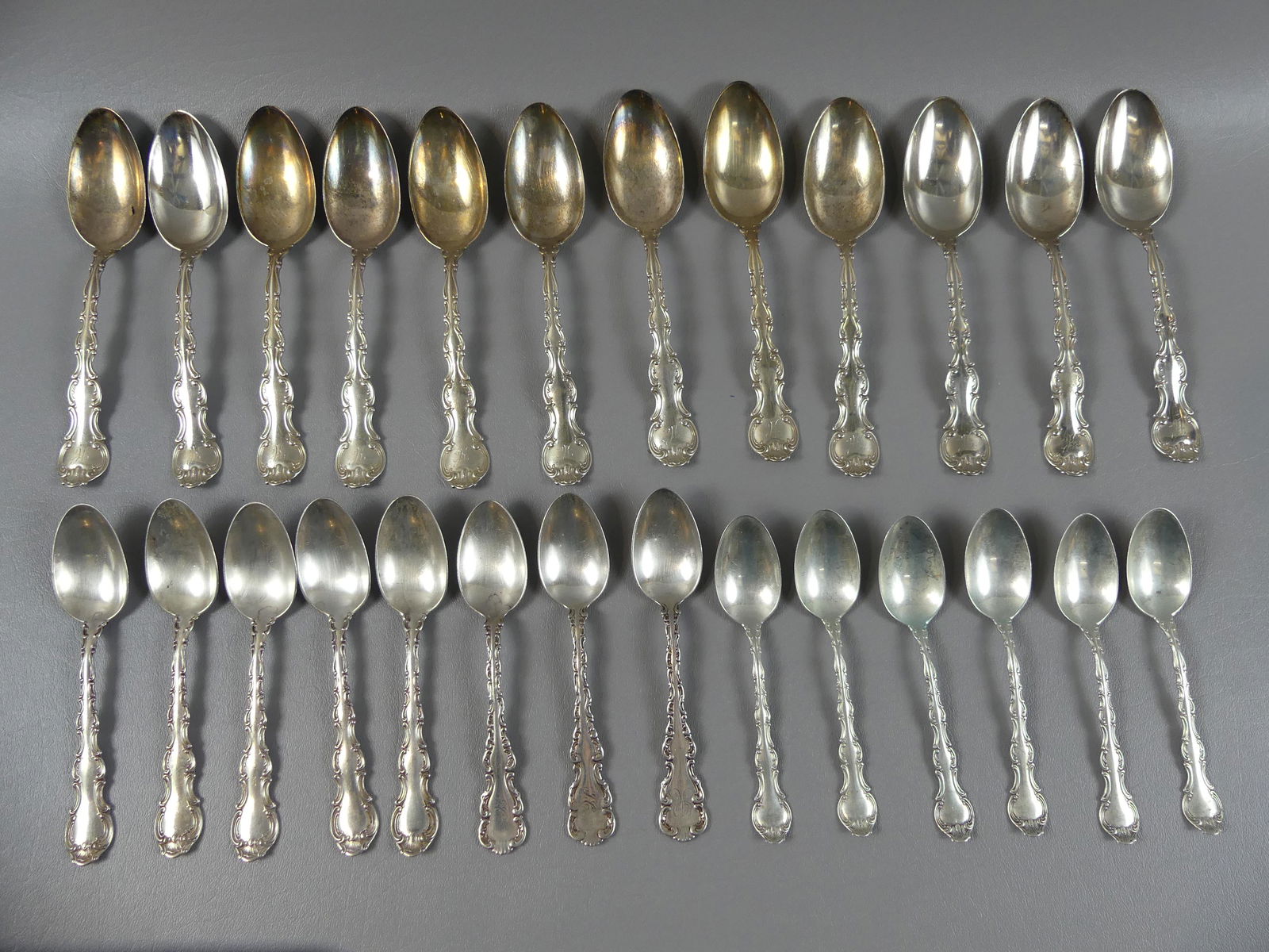 19PC LOT OF STERLING AND SILVER SPOONS, 25 T.O.W.4 days LeftGORHAM AND OTHER STERLING SILVER FLATWARE, LOT OF 2513 hrs LeftGORHAM AND OTHER STERLING SILVER FLATWARE AND SERVING UTENSILS, LOT OF 1413 hrs Left(12) STERLING SILVER DEMITASSE SPOON LOTMar 15, 2026Lot of 14 Sterling Silver Spoons, Assorted Patterns, 355 Grams TotalMar 15, 2026(24) STERLING TEASPOONS - VARIOUS PATTERN SETS2 days Left(12) STERLING SILVER TEASPOONS WHITINGMar 15, 202623 Pieces Assorted Sterling FlatwareMar 12, 2026Gorham Silver Co. Sterling Teaspoons2 days Left(9) STERLING SILVER GORHAM TEASPOONSMar 15, 2026Twenty-Five Pieces of British Sterling Flatware, 18th/19th/20th c., App. Total Sterling Wt.- 18.83Mar 27, 2026(6) STERLING SILVER TEASPOONSMar 15, 2026Sterling Flatware Including Mustard & Salt Spoons4 days Left8 Sterling Silver Long Spoons by "Stieff"Mar 27, 2026(6) STERLING SILVER VICTORIAN GORHAM TEASPOONSMar 15, 2026Gorham Old French Sterling Silver Teaspoon Set 12 pcs 5 7/8 in5 days Left