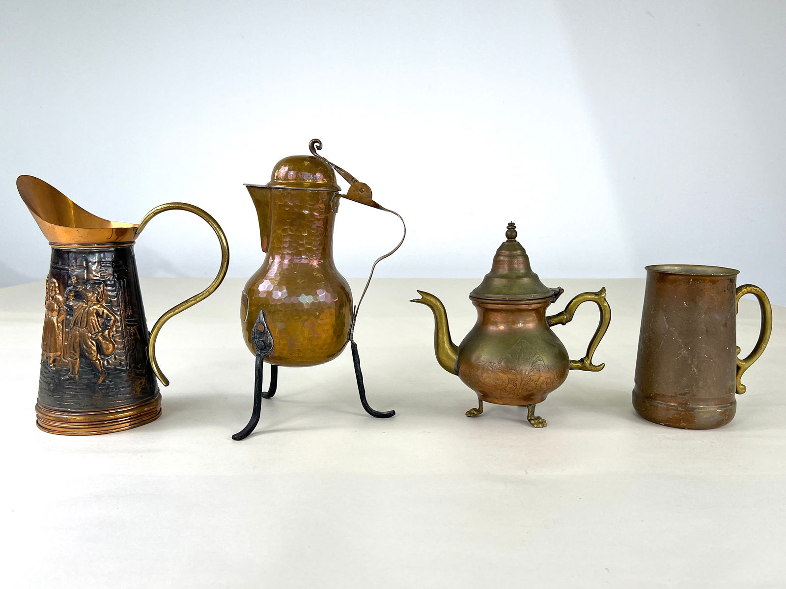LOT (4) ANTIQUE COPPER PITCHERS