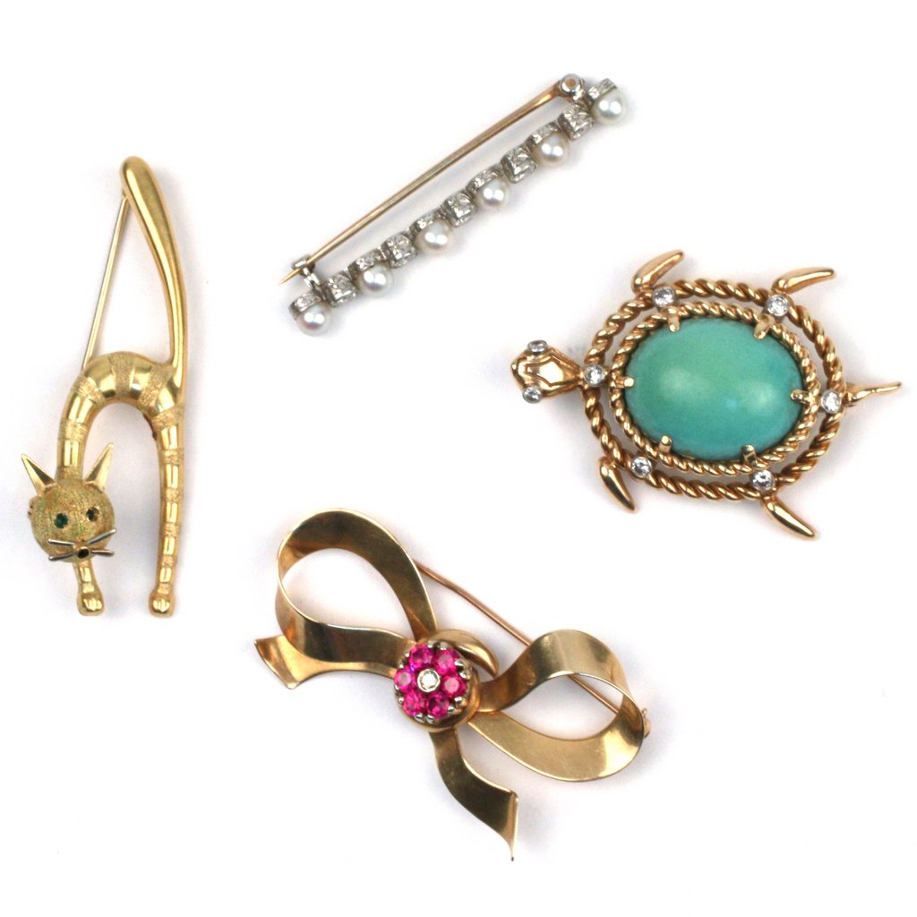 LUXURIOUS LADIES JEWELRY LOT OF 12Mar 28, 2026Vintage Coro BJ Silver Gold Tone Horse Turtle Tree Fish Brooch Pin Lot Of 5Mar 25, 2026GOLD & SILVER TONED LADIES JEWELRY LOT OF 14Mar 28, 2026Vintage Silver Tone Unsigned Grape Vine Teddy Bear Carousel Horse Brooch Pin Lot Of 4Mar 19, 2026WHIMSICAL AND GORGEOUS LADIES JEWELRY LOT OF 11Mar 28, 2026JEWELRY: 14K and cultured pearl earrings, brooch and bar pin, six pieces total, including: flower or7 days LeftA group of four antique 10k, 12k, and 14k gold jewelry piecesMar 19, 2026CORO / CoroCraft - Four Vintage Sterling BroochesMar 21, 2026Antique 14K and 10K Gold Stick Pins and LavalieresMar 20, 2026Contemporary Tiffany and Floral Sterling Silver JewelryMar 28, 2026JEWELRY: Five 14K stick pins: three mounted with clear faceted stones appearing to be diamonds; one7 days LeftJEWELRY: Ten pieces of 10K yellow gold, all stamped, including: pair of screw-back earrings with7 days LeftGroup of 10k Gold JewelryMar 28, 2026J.J. / AJC / AVON - Three Gold-colored Vintage Brooches with Cat Motif (3 Pieces)Mar 21, 2026Designer Costume Jewelry Brooches, 10Mar 26, 2026Coro Insect Pin, Coins, Brooches, and JewelryMar 30, 2026