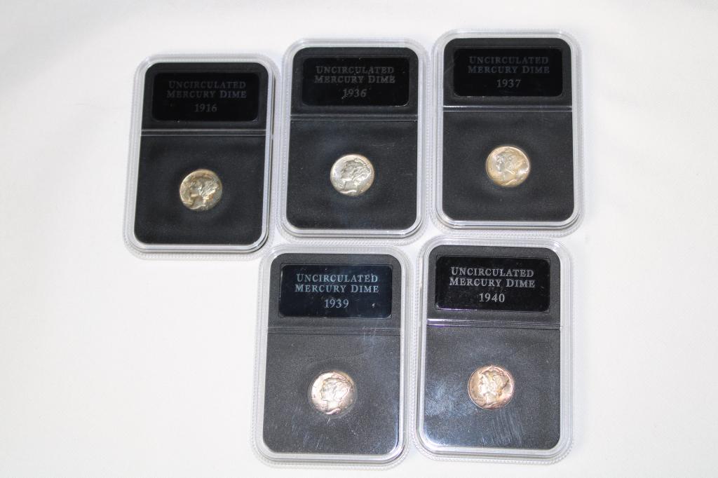 Lot - 5 Uncirculated Mercury Silver Dimes
