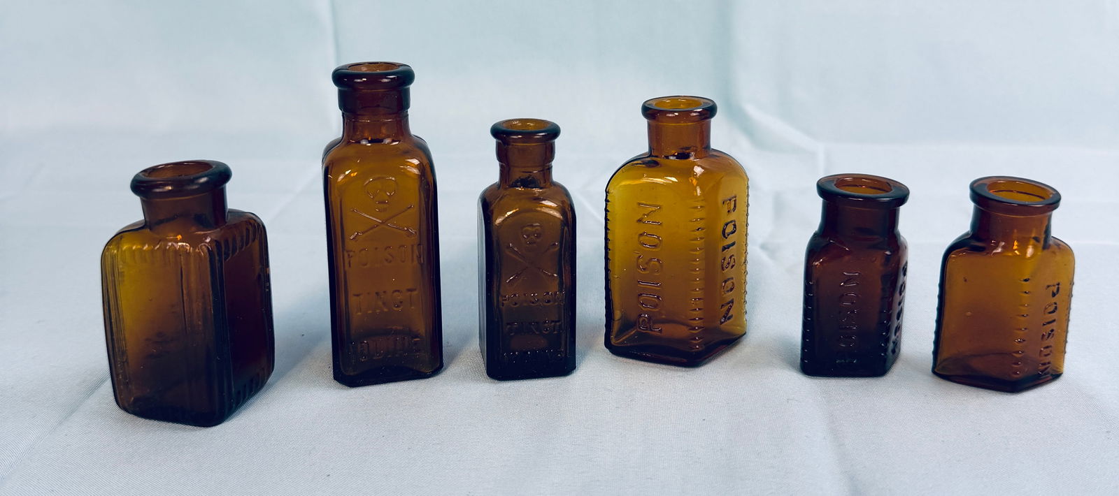 Lot 6 Amber Poison Bottles