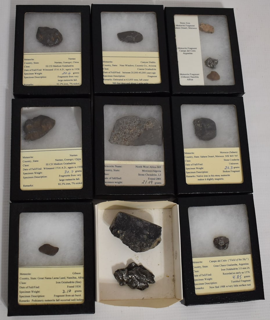 LOT ASSORTED METEORITES W/ DISPLAY INFORMATION