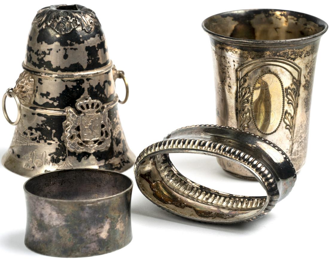 A composed lot of four religious silver and silver-plated brass church objectsFeb 24, 2026800 Silver Table Napkin Rings 9 PIECE ESTATE LOTFeb 11, 2026Group of 5 Beer Steins/MugsFeb 07, 2026Pair of Vintage Sterling Silver Golblets - Cordial GlassesSet of Four Vintage Sterling Silver Cordial GlassesA GROUP OF FOUR SILVER BEAKERS. Continental, 19th century.Feb 18, 2026Pewter Holloware, Boardman, BadgerFeb 08, 2026Three Coin Silver Beakers Beggs & Smith, Ohio; Abraham G. Forbes (1763-1833), New York; and Zeb...Group of Assorted Sterling Silver and Silver Plated Table ArticlesFeb 05, 2026Collection of Sterling Silver Articles, 9Feb 07, 2026A Collection of Vintage Decorative Brassware including Planter, Handbell, and Napkin RingsFeb 15, 2026Estate Compiled Sterling Silver Table Wares5 days LeftEnglish Sterling Silver Mustard PotFeb 05, 2026Set of Four Tiffany & Co Makers Sterling Silver Mini CordialsFeb 05, 2026Group of 9 Sterling Silver RingsFeb 14, 2026Group of Four Pewter Bridge and Polo TrophiesFeb 11, 2026