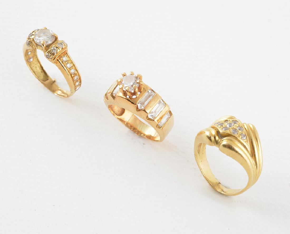 THREE 14K GOLD GEM-SET RINGS