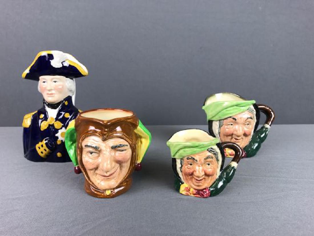 SoldLot Figural JugFigural jug: 5.5" image of Admiral Lord Nelson, Woods & Sons. England, 3 Royal Doulton Toby mugsSee Sold Price