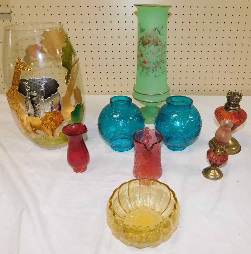 Surprise Lot of Table Articles6 days LeftSurprise Lot of Table Articles6 days LeftEstate lot interesting colored glasswares, to include candlesticks, pitchers, vases, (2) souvenirFeb 06, 2026Estate lot Victorian pink and related colors glassware, many handpainted pieces, and unusualFeb 06, 2026Large misc. estate lot of porcelains, ceramics, glasswares, Asian wares, large stein, depressionFeb 06, 2026Misc. estate lot to include celluloid back folding mirror, celluloid photograph pins, flute covers,Feb 06, 2026BIG estate lot older glassware, includes dessert plates, glasses with horses, set 1950's glasses inFeb 06, 2026Misc. estate lot of porcelains and contemporary art glass vase, all from local estate, includingFeb 06, 2026Estate lot colored glass vases, and pitchers, celuloid box with lid, reproduction Mammy cast ironFeb 06, 2026Decorative Glass GroupingFeb 21, 2026A group of seven art glass table articles4 hrs LeftGroup of Glass Lamp Shades and MoreFeb 14, 2026A Collection of 4 Studio Art Glass Objects Attributed to Maxence ParotFeb 15, 2026Group of "Mary Gregory" Colored Glassware, 4Feb 07, 2026Five Modern Art Glass Table Articles6 days LeftBiot, Kanawha, and Other Art Glass Vessels, 10Feb 07, 2026