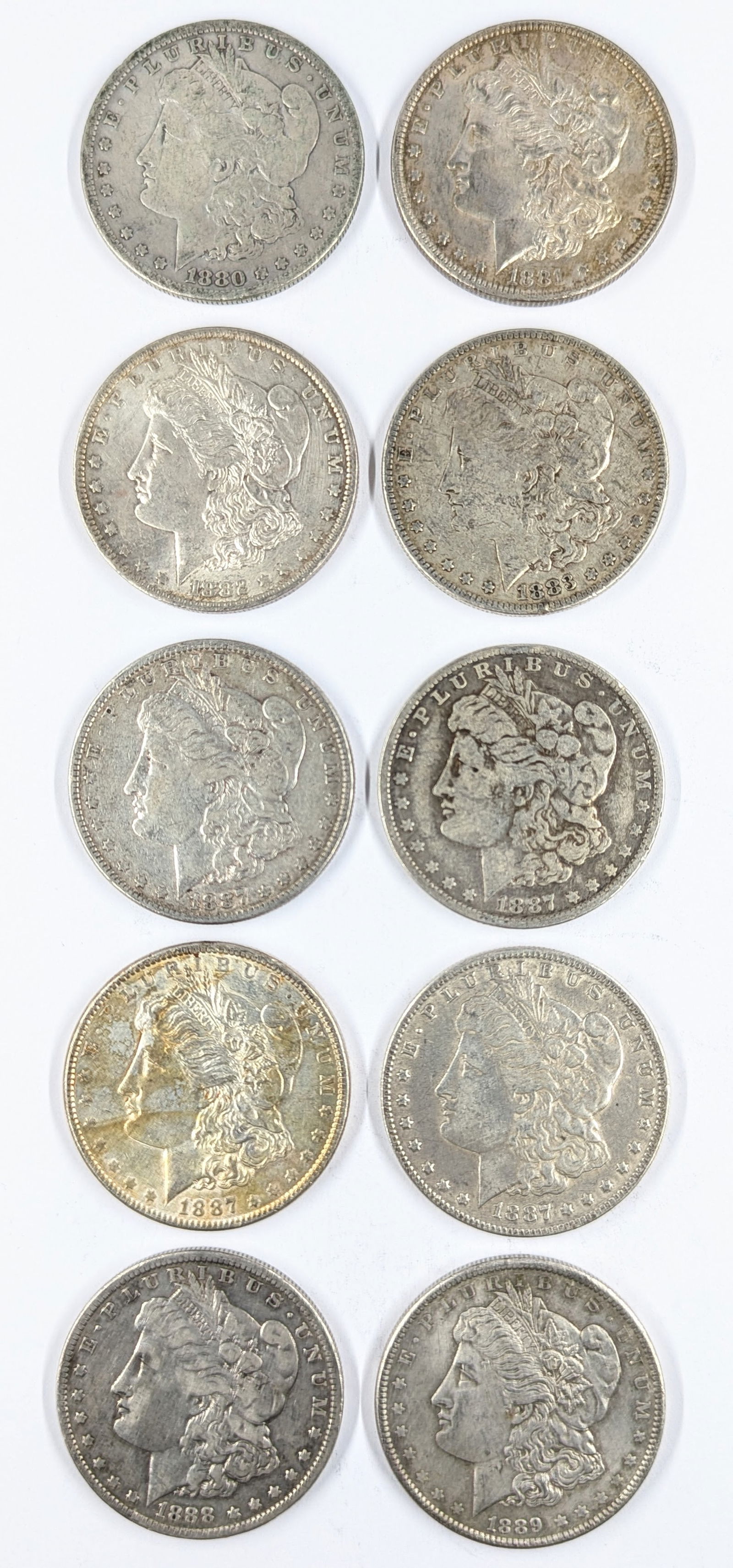 Lot of 10 Morgan Silver Dollars - 1880-1889
