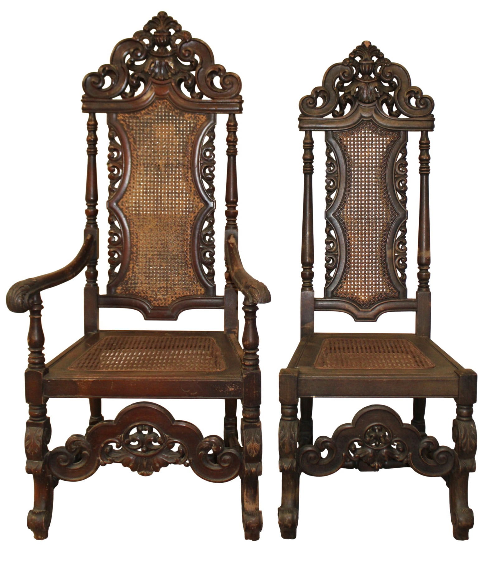 Sold(lot of 2) Jacobean style side chairs(lot of 2) Jacobean style side chairs, each having a foliate carved crest, above barley twist supports, and having a cane seat, largest: 42.5"hSee Sold Price