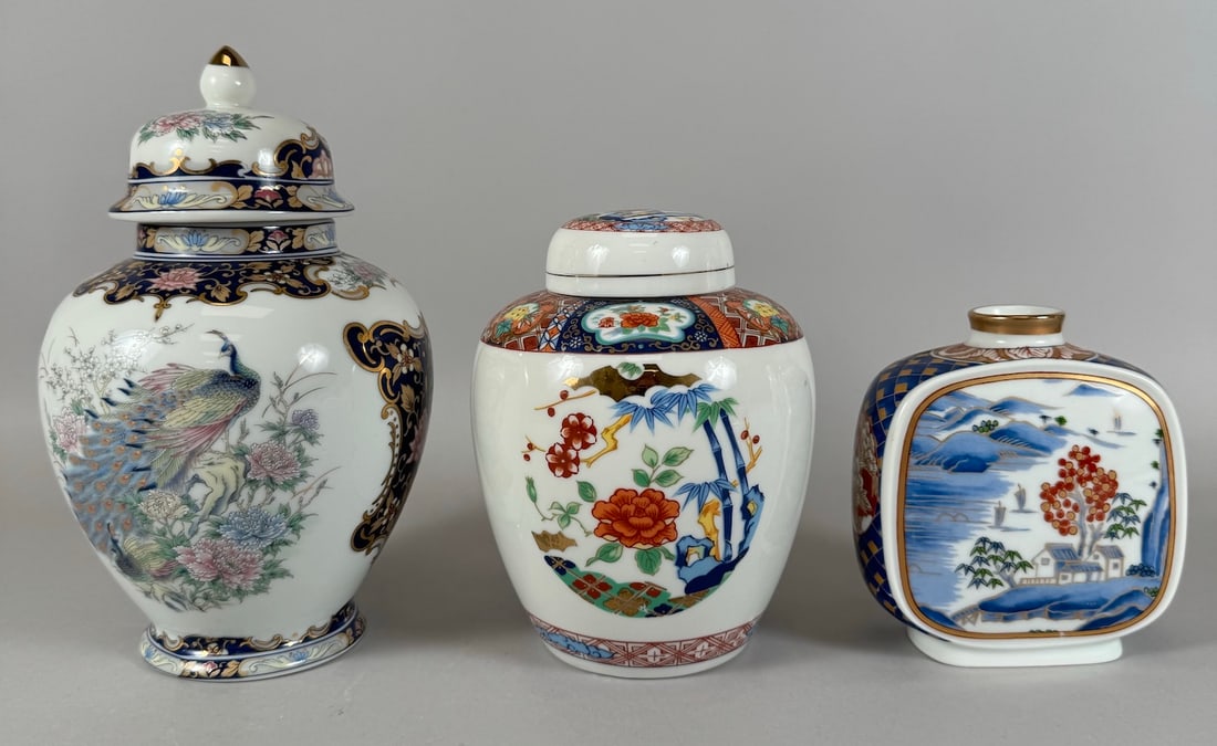 Lot of 3 - Vintage Japanese Gold Trim Ginger Jars & Vase Toyo Miyako Imari