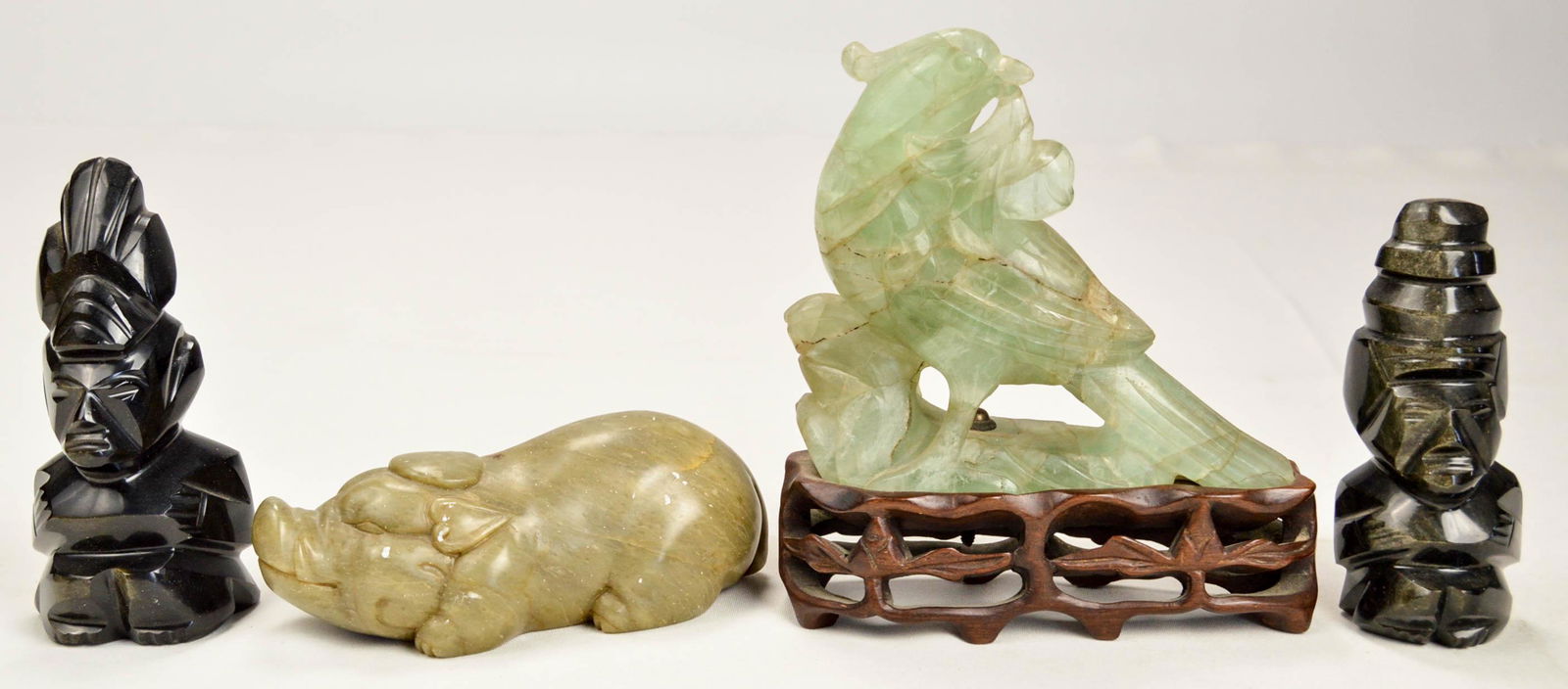 Sold4 PIECE ASIAN LOT4 PIECE ASIAN LOT, CARVED STONE STAMP, COMPOSITE STATUE & 2 SMALL DISKS IN WOOD HOLDERS W/IMAGES OF BIRDS, STATUE IS 16 INSee Sold Price
